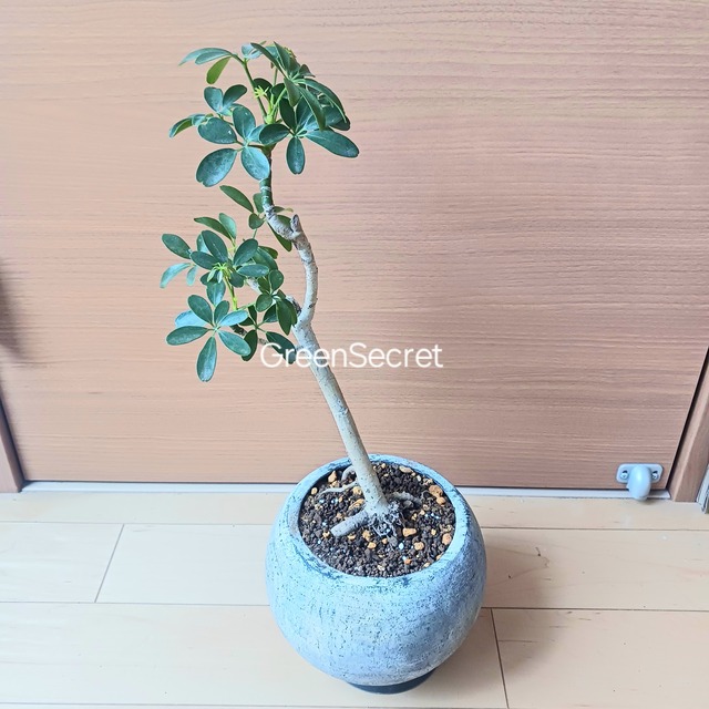 手のひらを広げたようなシェフレラ(ホンコンカポック)の葉をぎゅっと小さくしたコンパクタ 浅鉢に植えて盆栽風にしたり、お気に入りの鉢に入れると見映えがよくなります 《鉢サイズ》 4号鉢(直径12cm × 高さ14cm) 緑のプラ鉢 《植物サイズ(鉢込み)》 横幅:約22cm × 高さ:約41cm 《撮影日》 2025年10月9日 現在の状態を確認したい場合は、購入前にお知らせください。画像追加いたします 《置き場所》 ・風通しのよい室内または屋外の明るい場所 《水やり》 ・土の中まで乾いてからたっぷりと与えてください ・冬場に置く場所の温度が15℃以下になる場合は、水やり回数を減らし、乾燥気味に管理します ↓↓シェフレラの育て方はこちら↓↓ 【観葉植物の王道】シェフレラ(ホンコンカポック)の育て方|初心者でも失敗しない定番グリーン https://greensecret.base.shop/blog/2025/08/08/002700 《発送について》 ●宅急便の場合 ・再利用の段ボールを使用します ・箱に収まるように、枝や葉を曲げる場合があります ・送料一律1,500円 ・お届け先が寒冷地の場合、+200円で緩衝材を多めに使用します。不要な方はオプションより【通常梱包】の選択をお願いします ・お届け日時指定可能 午前中/14-16/16-18/18-20/19-21 ●引き取りの場合 ・東京都墨田区墨田2-1-1トヨタモビリティまで取りに来られる場合は、送料かからず商品代金のみです ・お支払いは当日に現金で手渡しでも構いません。その場合は、購入せずにお問い合わせよりご連絡ください 《ご注意》 ・植物は日々成長しているため、写真と多少異なる姿で届く場合があります ・虫はできる限り取り除いて発送いたしますが、多少の混入はご容赦ください ・輸送中の葉の傷みや土こぼれ等についてもご理解をお願いいたします(鉢から抜いて土を落として発送も可能) ・商品違いなど当方のミスがあった場合のみ、返品をお受けします 当店はネット販売が中心ですが、植物を実際に見たい方には自宅の駐車場スペースのごく一部だけですがご案内しています。公開している店舗ではないため、ご希望の方は事前にご連絡ください。場所は個別にご案内いたします。 東京都墨田区墨田にある「トヨタモビリティ東京 墨田向島店」近くです。 ●画像、本文の転載禁止●