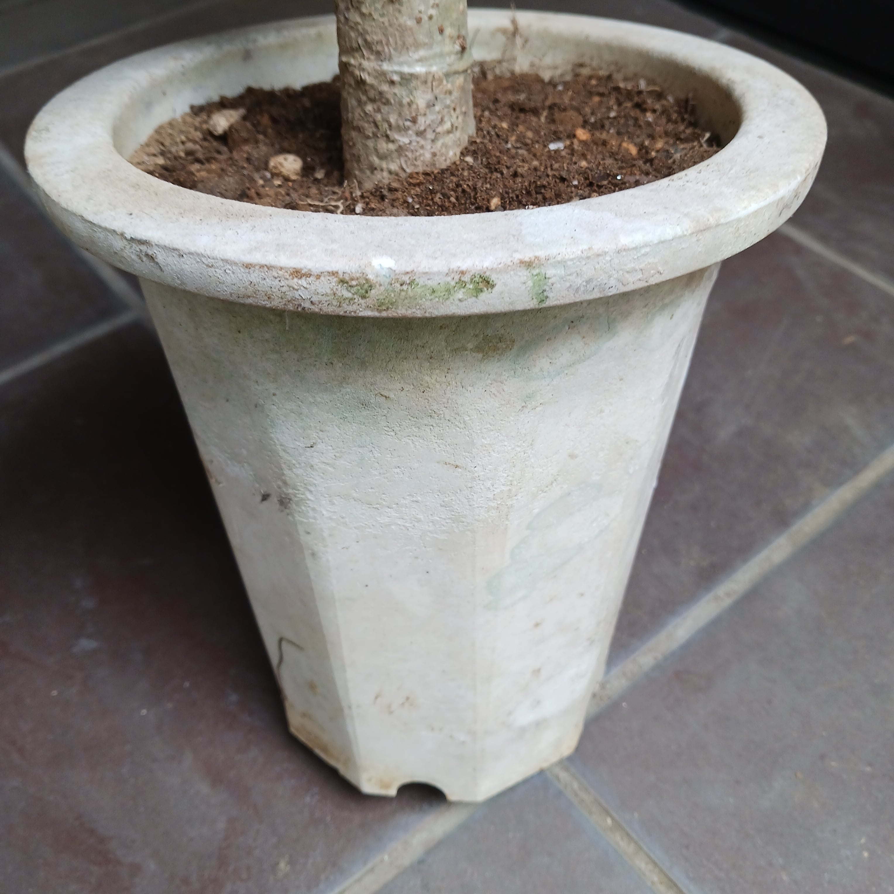 年期のある白のプラ鉢