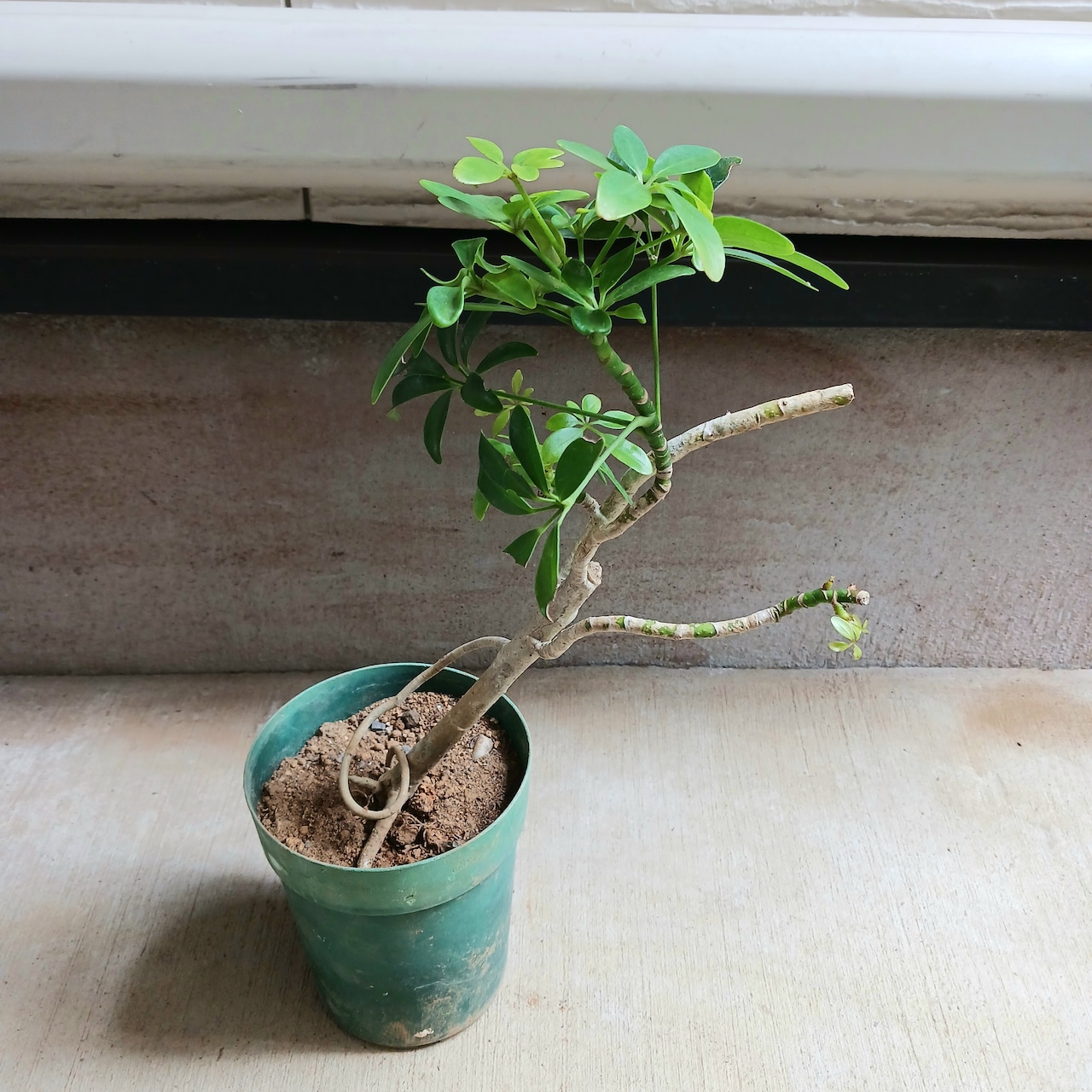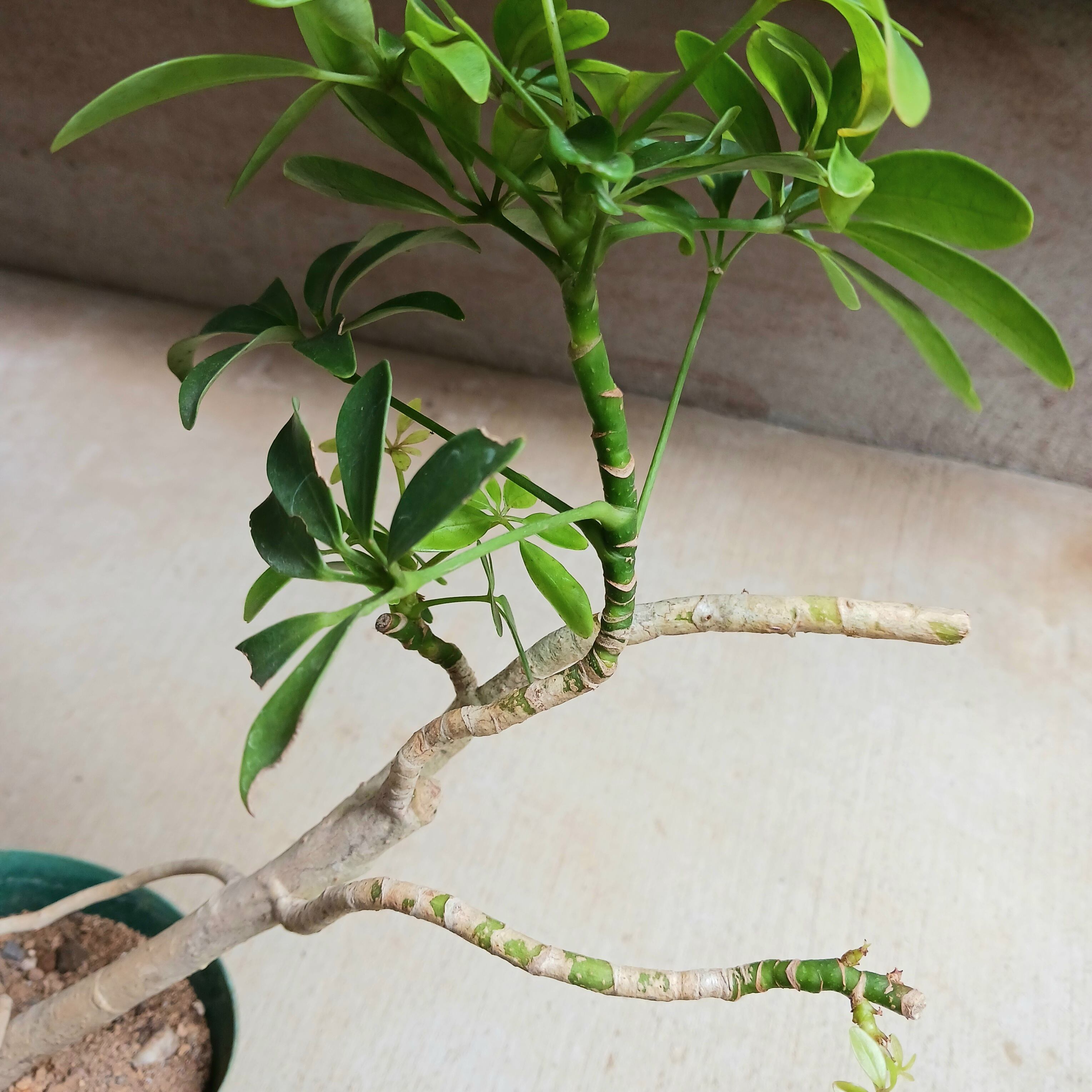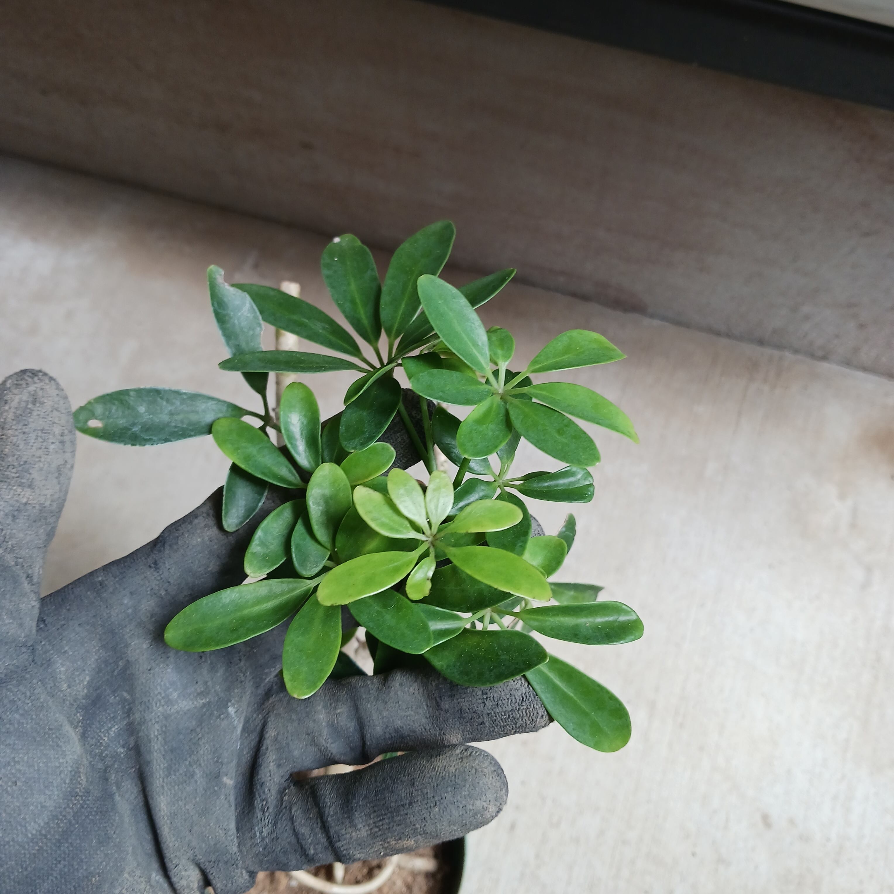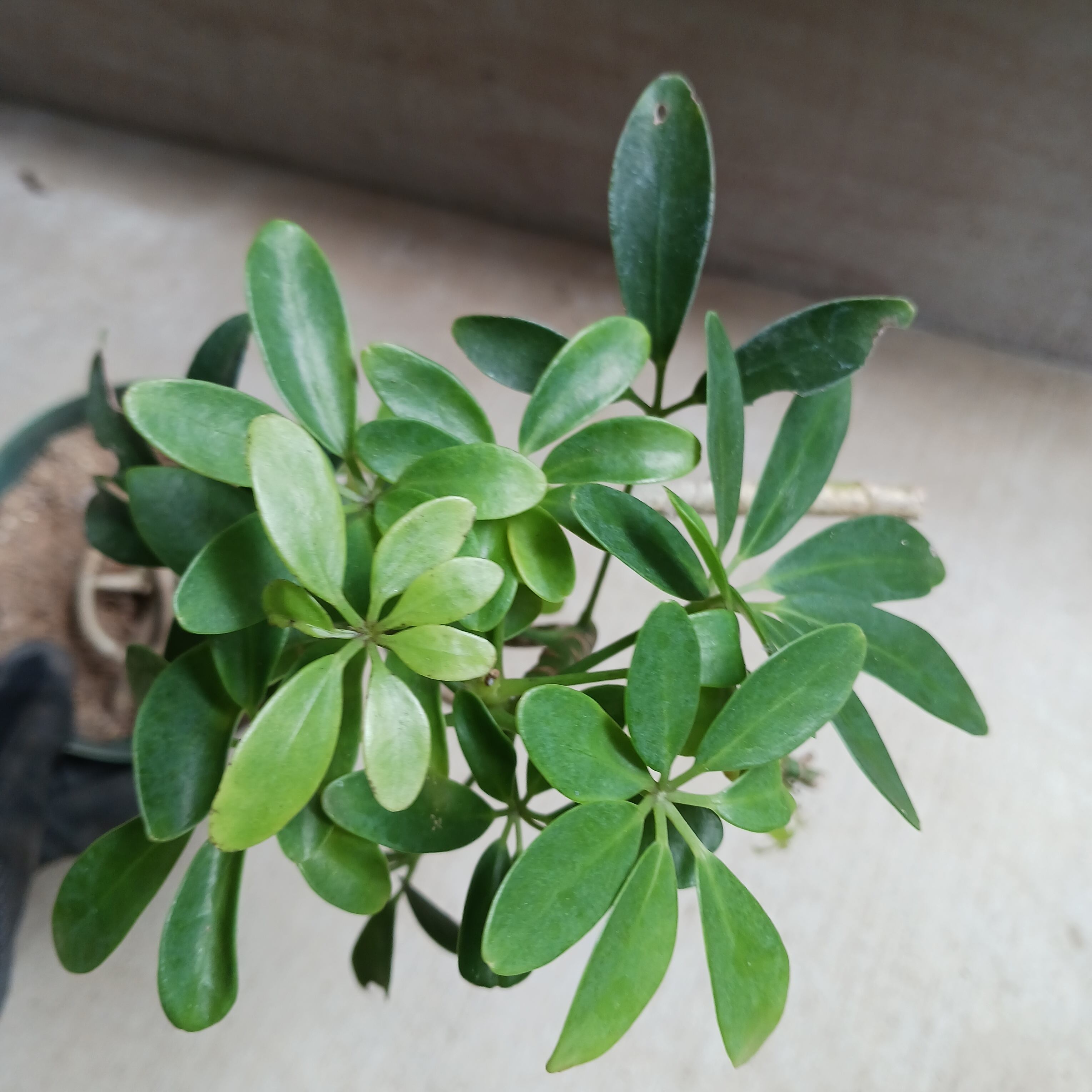 手のひらを広げたようなシェフレラ(ホンコンカポック)の葉をぎゅっと小さくしたコンパクタ