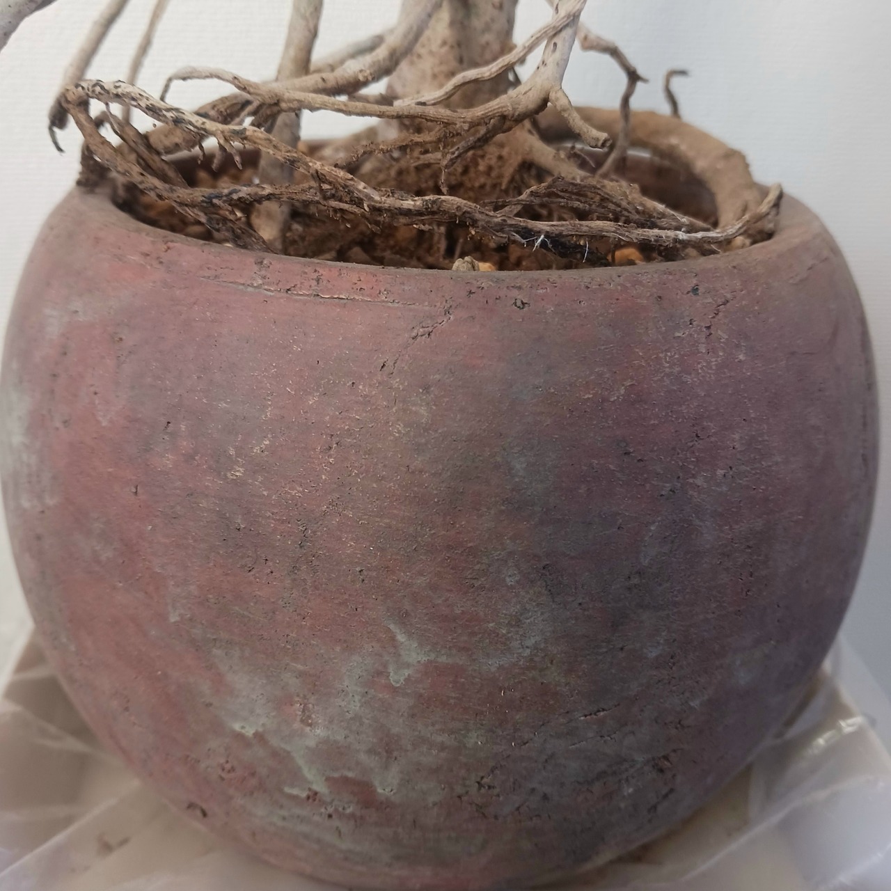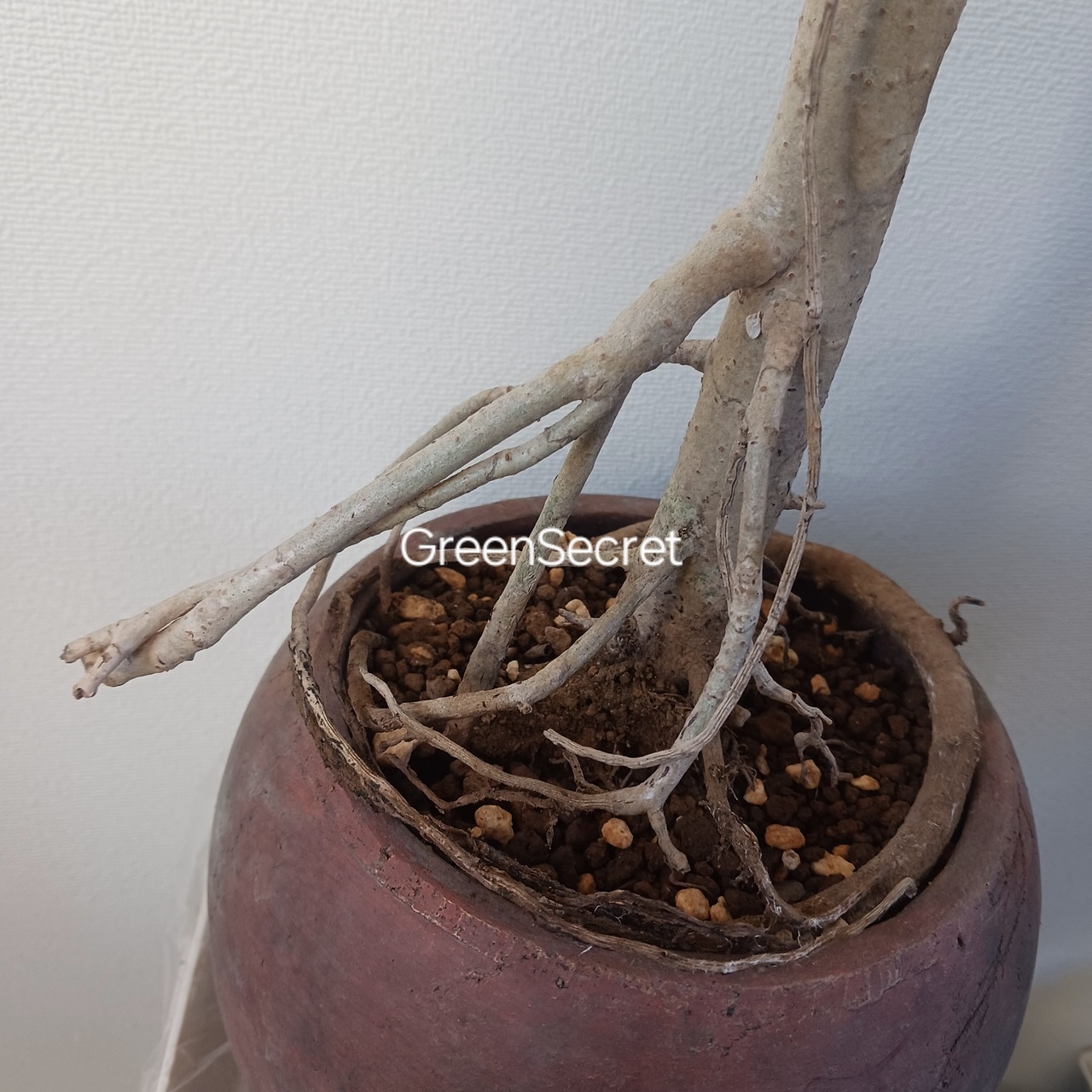 植え替え2/28。鉢底穴が小さいため、鉢底に発泡スチロールを入れ、赤玉と鹿沼土を混ぜた無機質用土にしてます。マグアンプも入ってます。