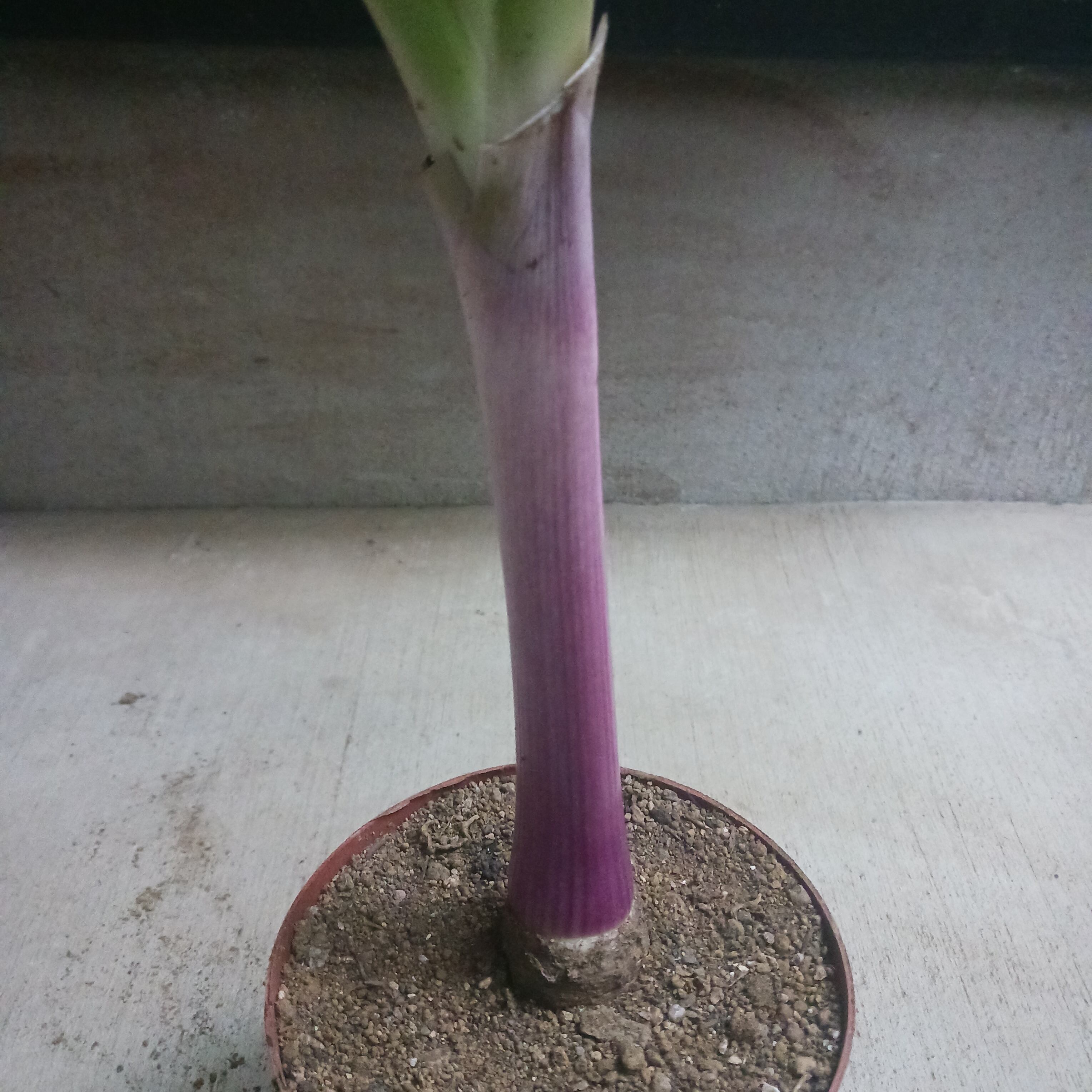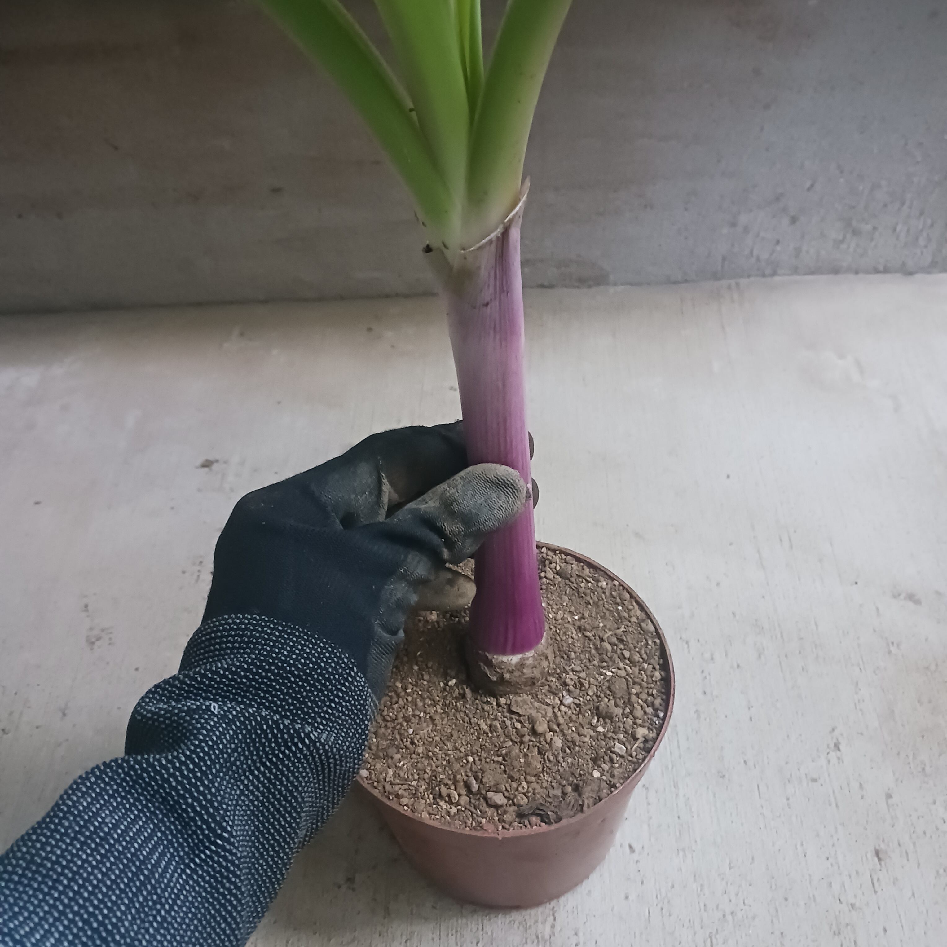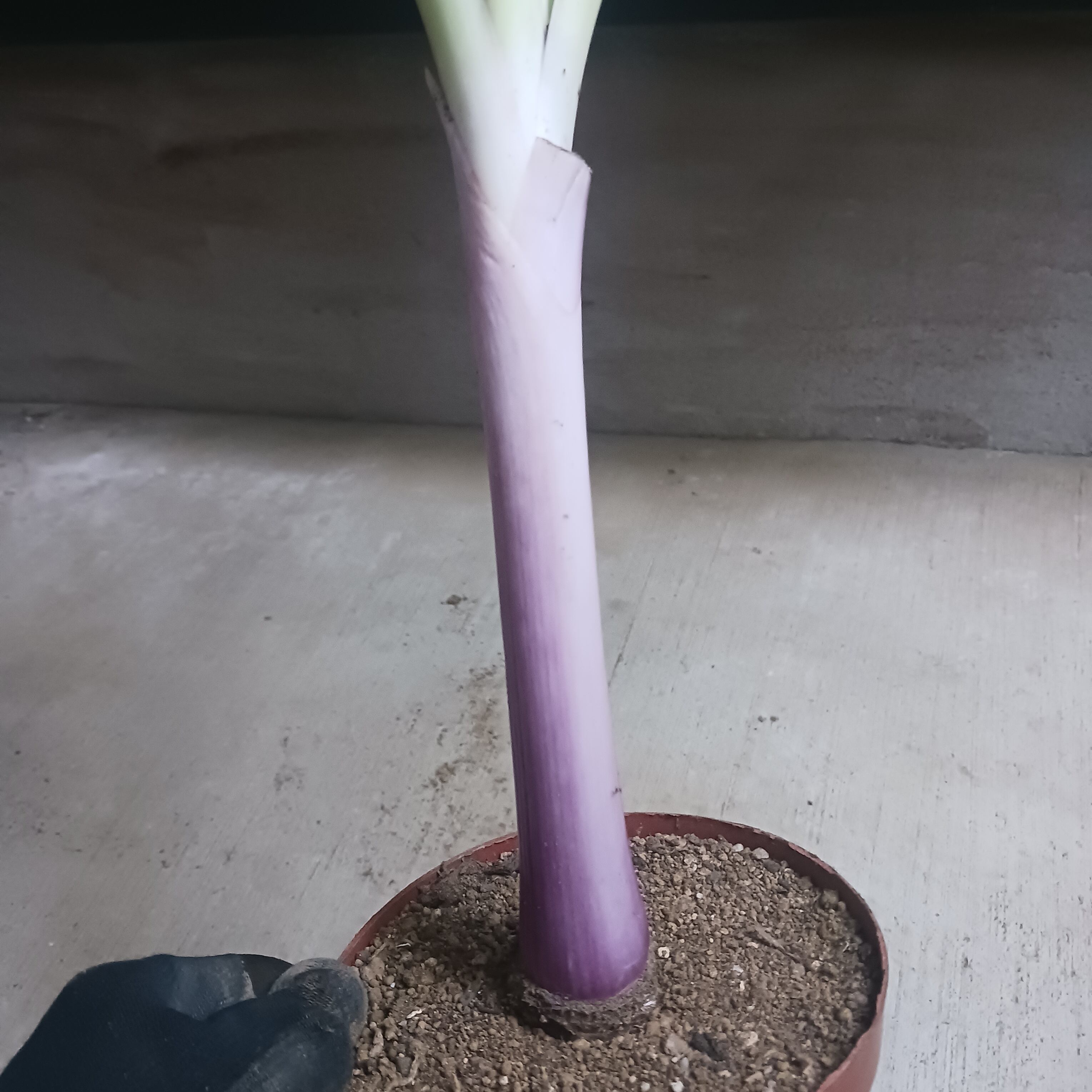 細葉タイプではなく、太めの葉にきれいな紫の茎(偽茎)が特徴です