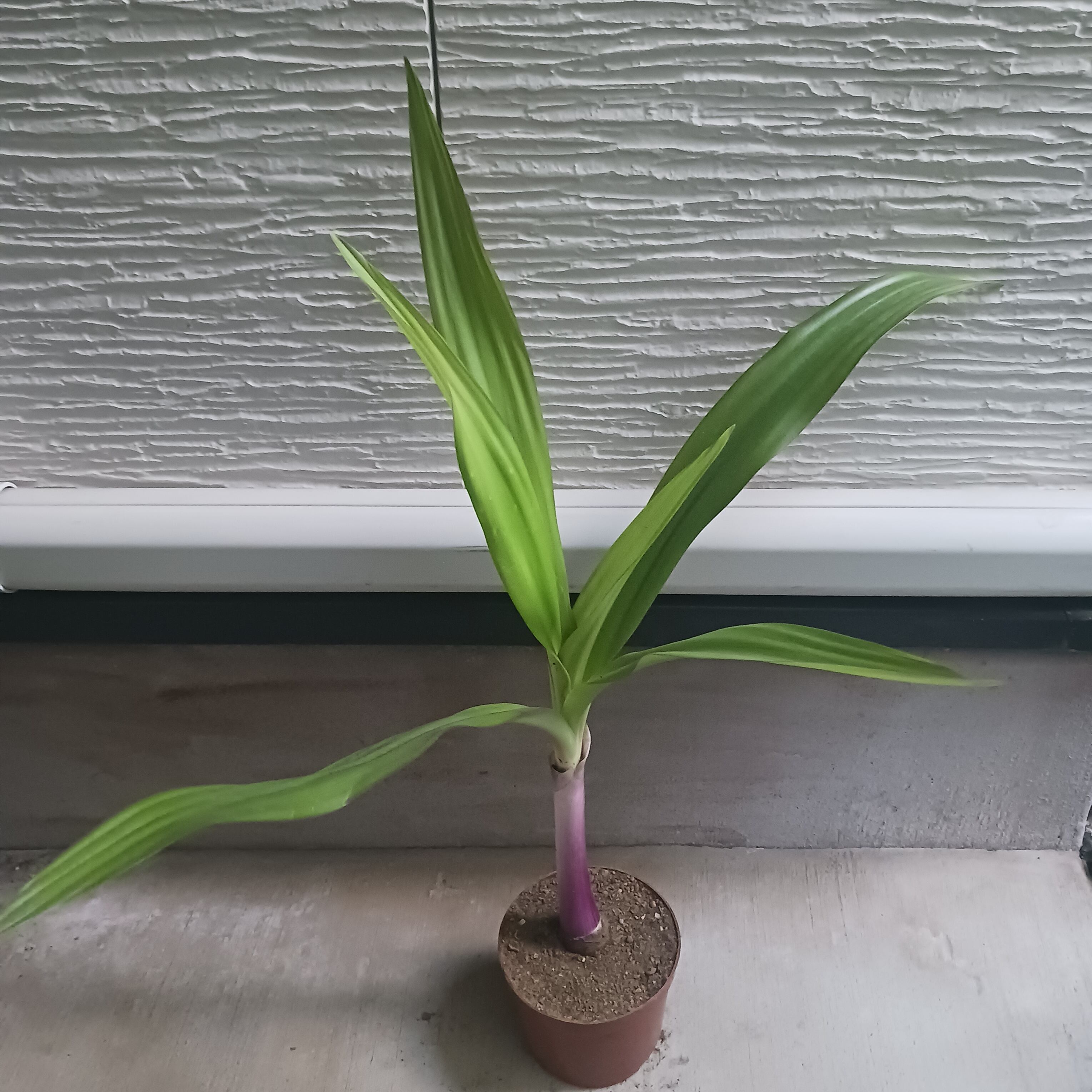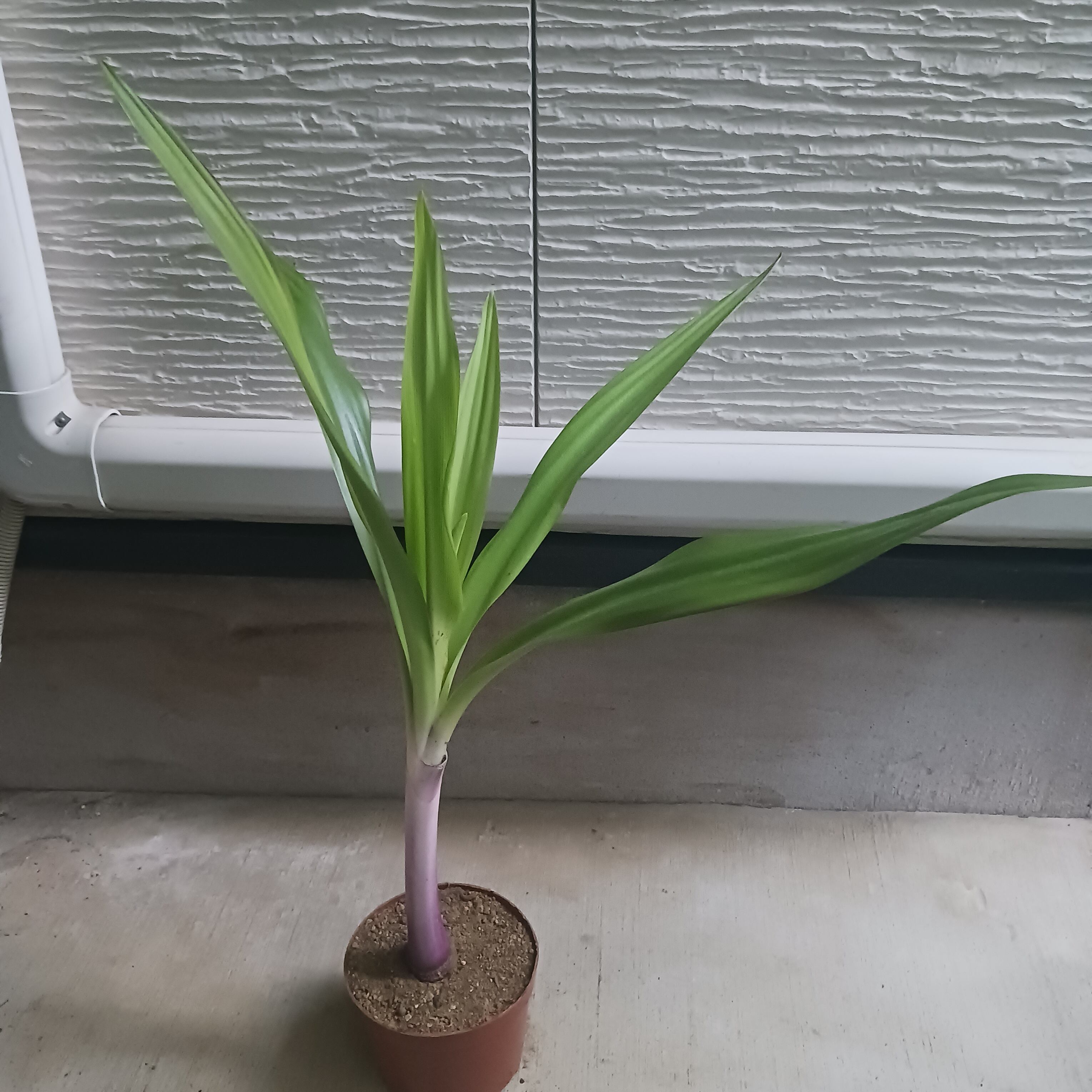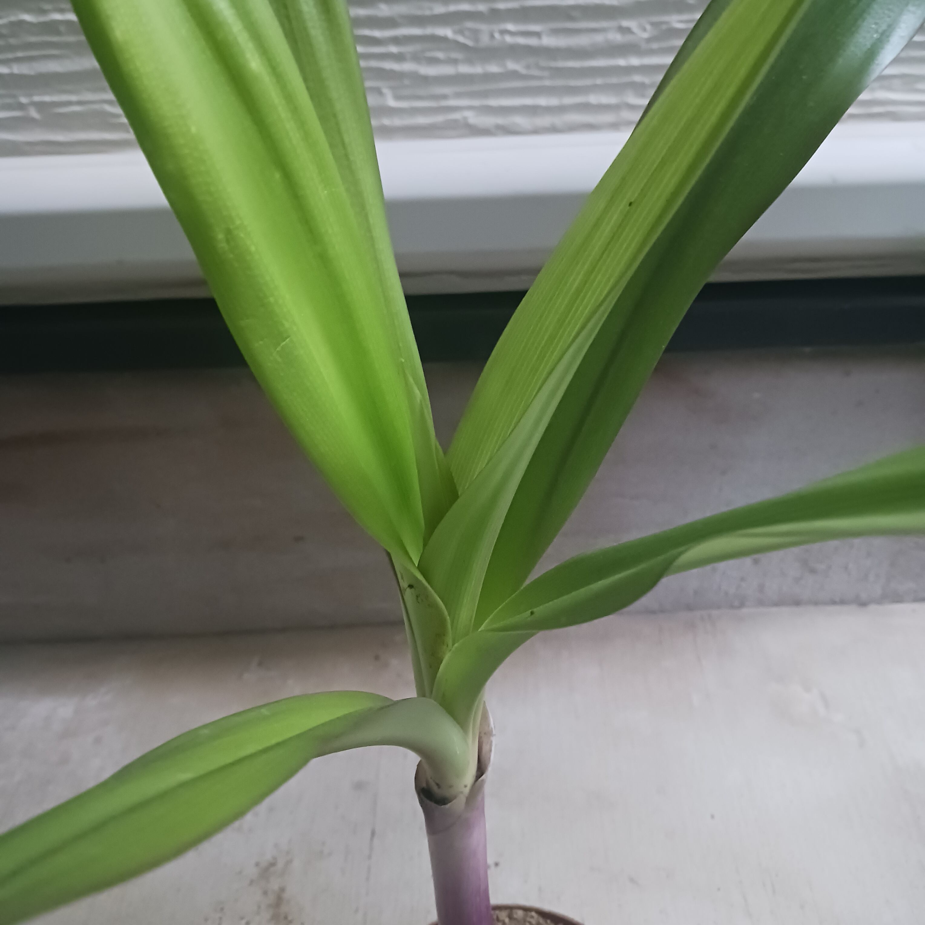 細葉タイプではなく、太めの葉にきれいな紫の茎(偽茎)が特徴です