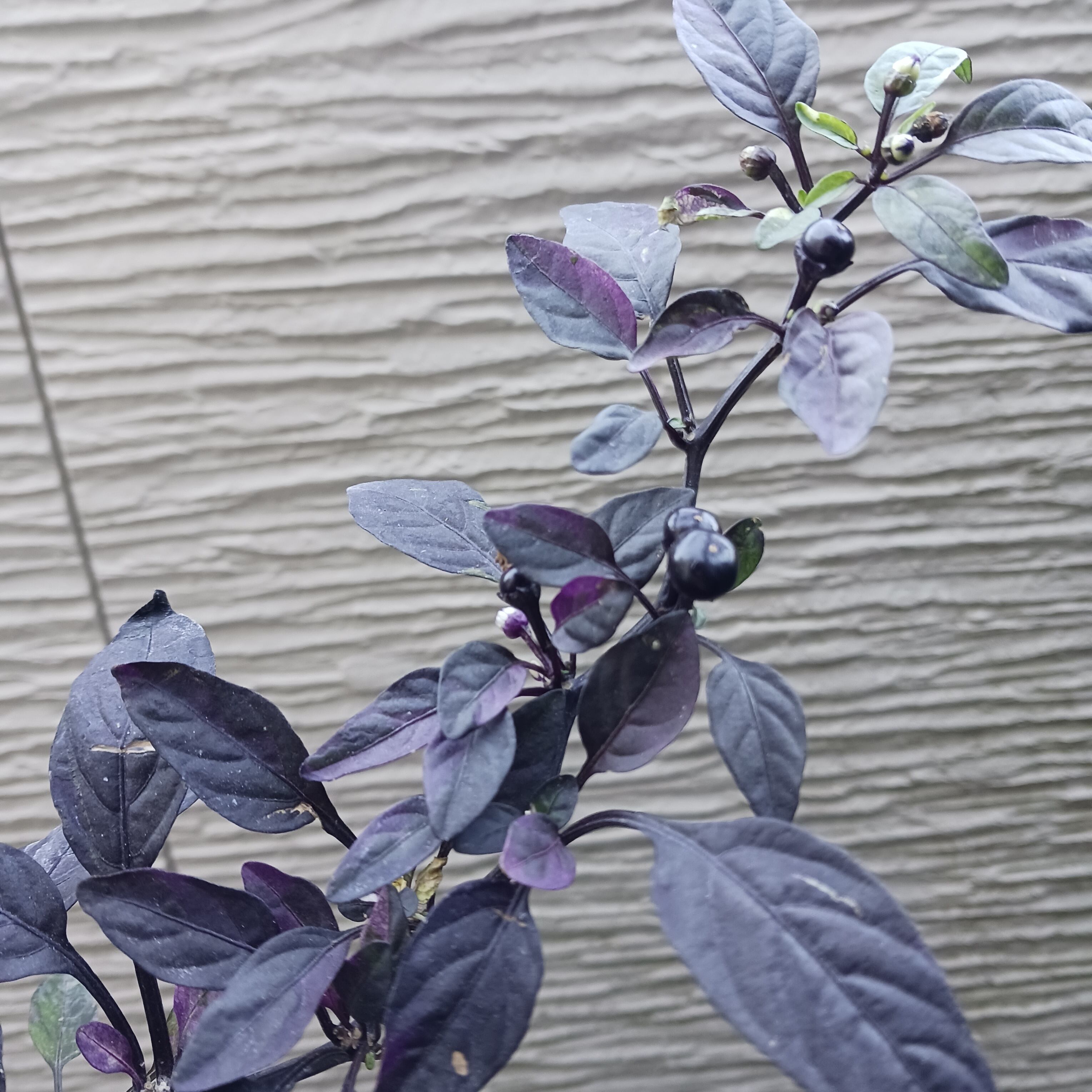 シックな色合いがアクセントカラーになるパープルフラッシュです。花と実も紫色です