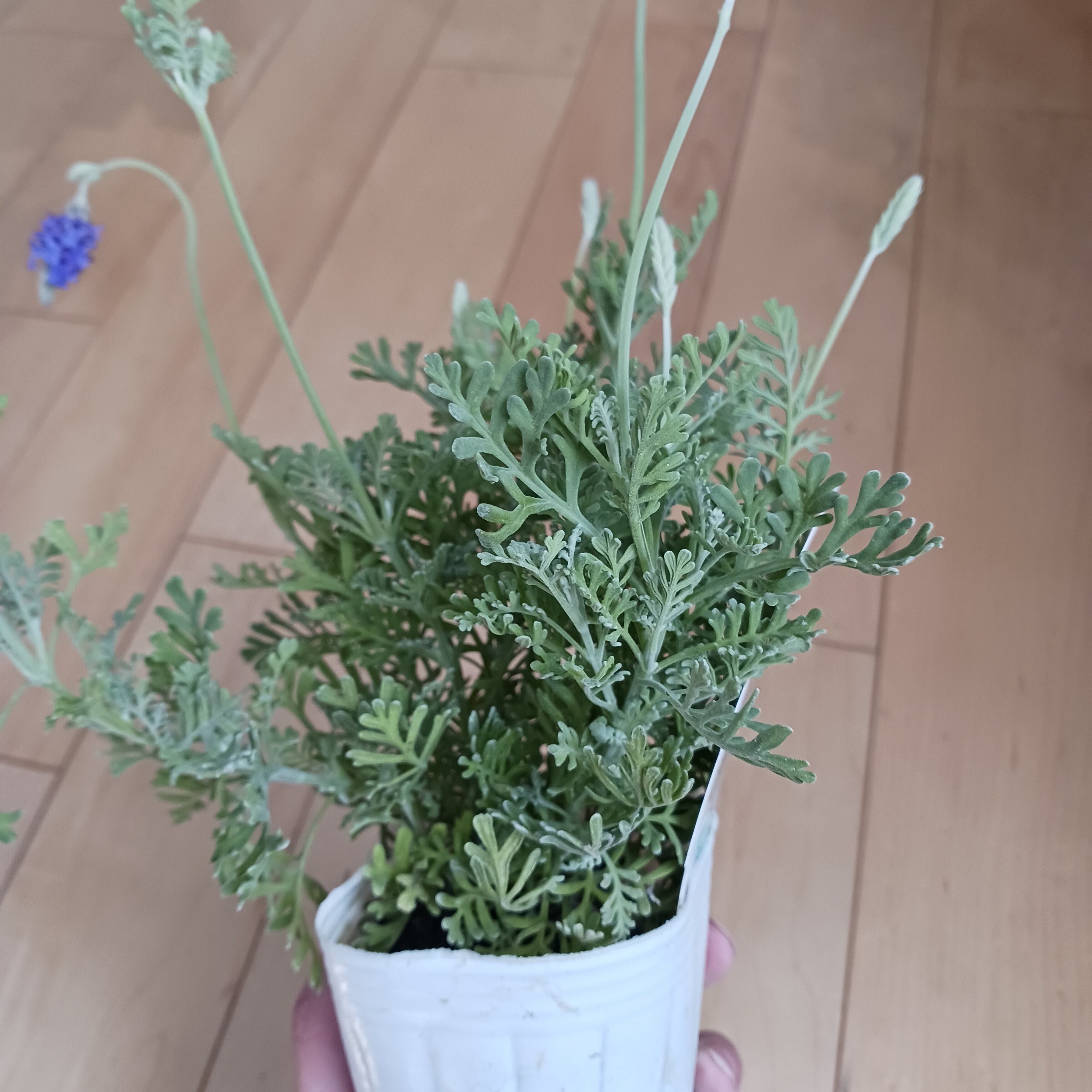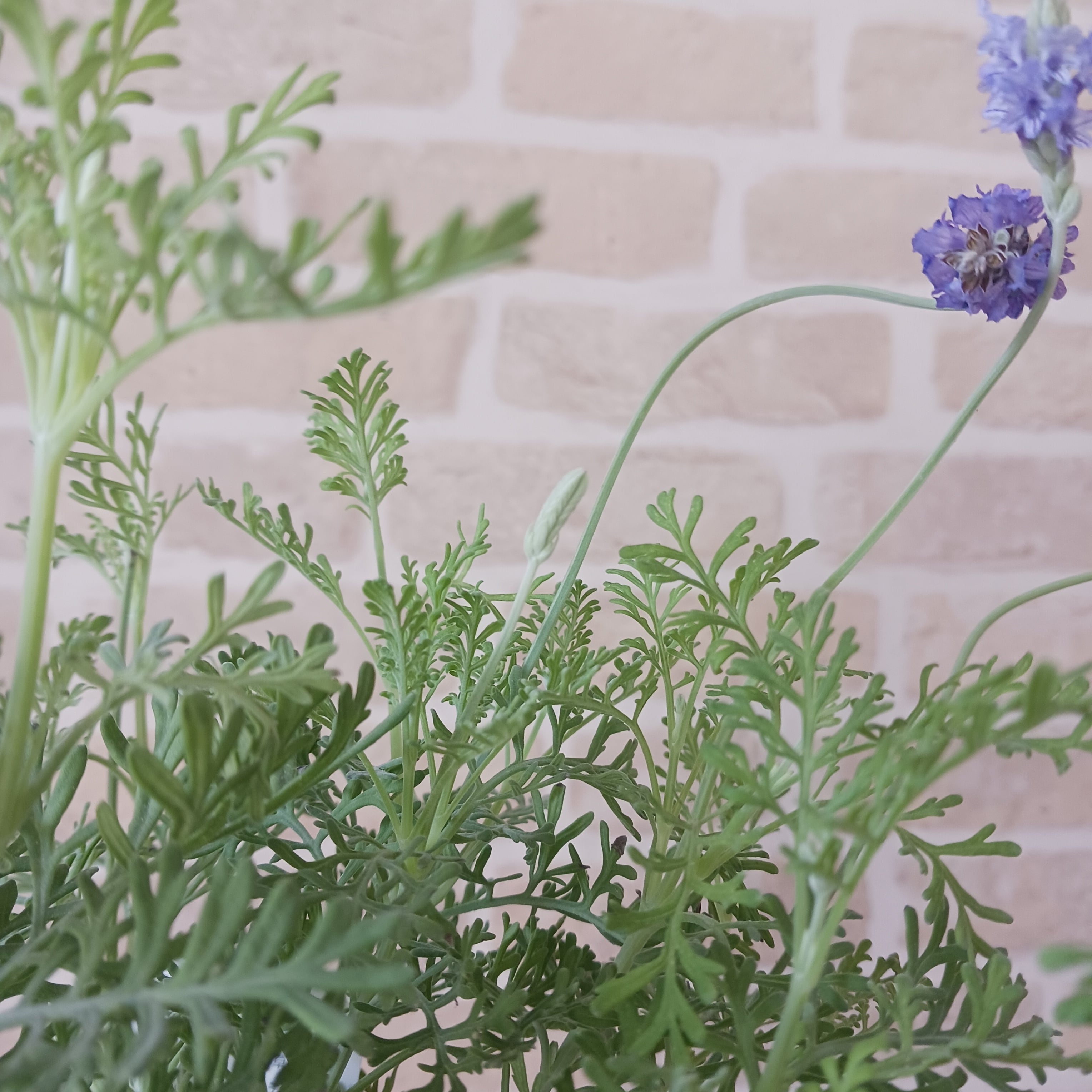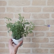 切れ込みのある葉が特徴のレースラベンダーです。シルバーががった葉と、香りのある花を楽しむことができ、ナチュラルガーデンに映えます