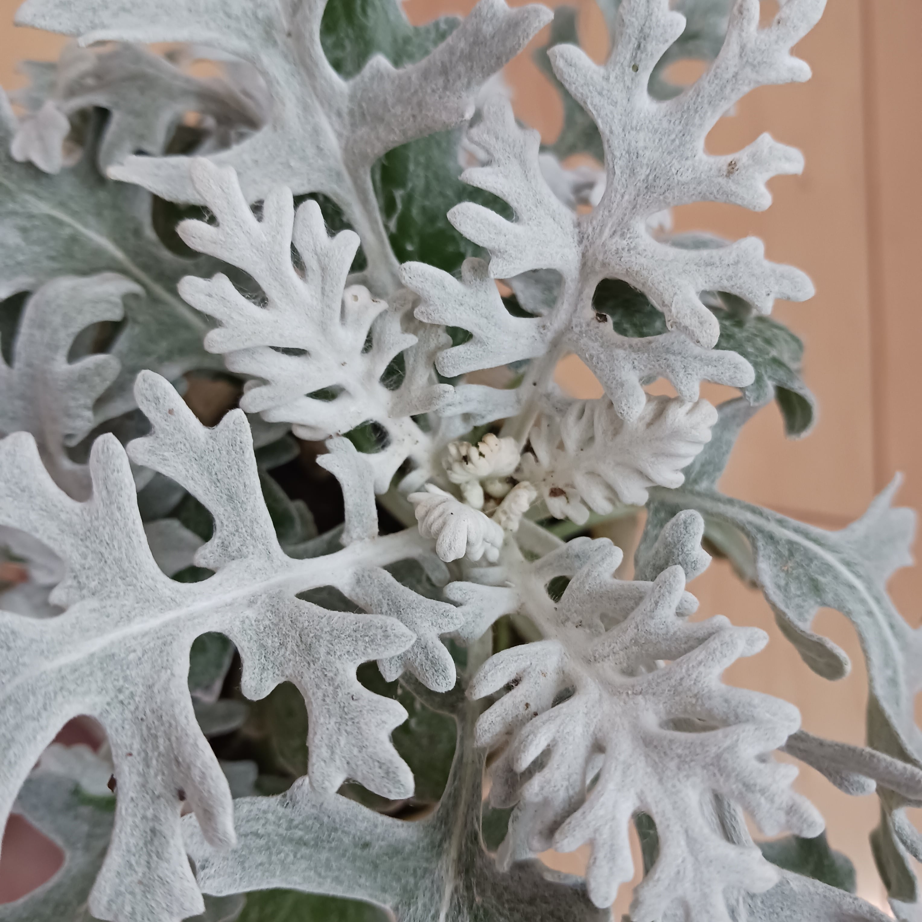 雪が積もったような白い葉が特徴のダスティーミラーです