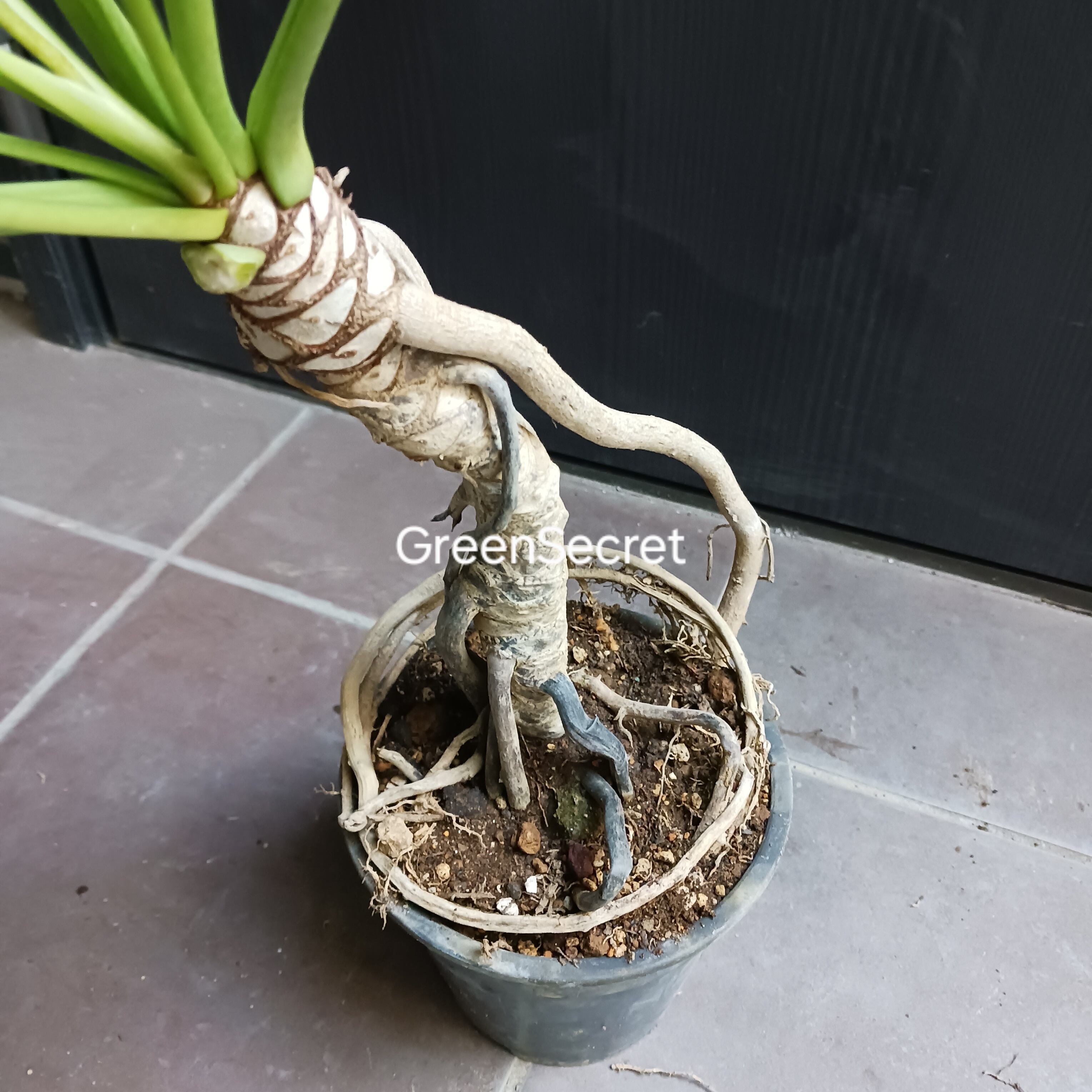 しっかりとした幹から気根が出ており、株を支えながら力強く成長しています。