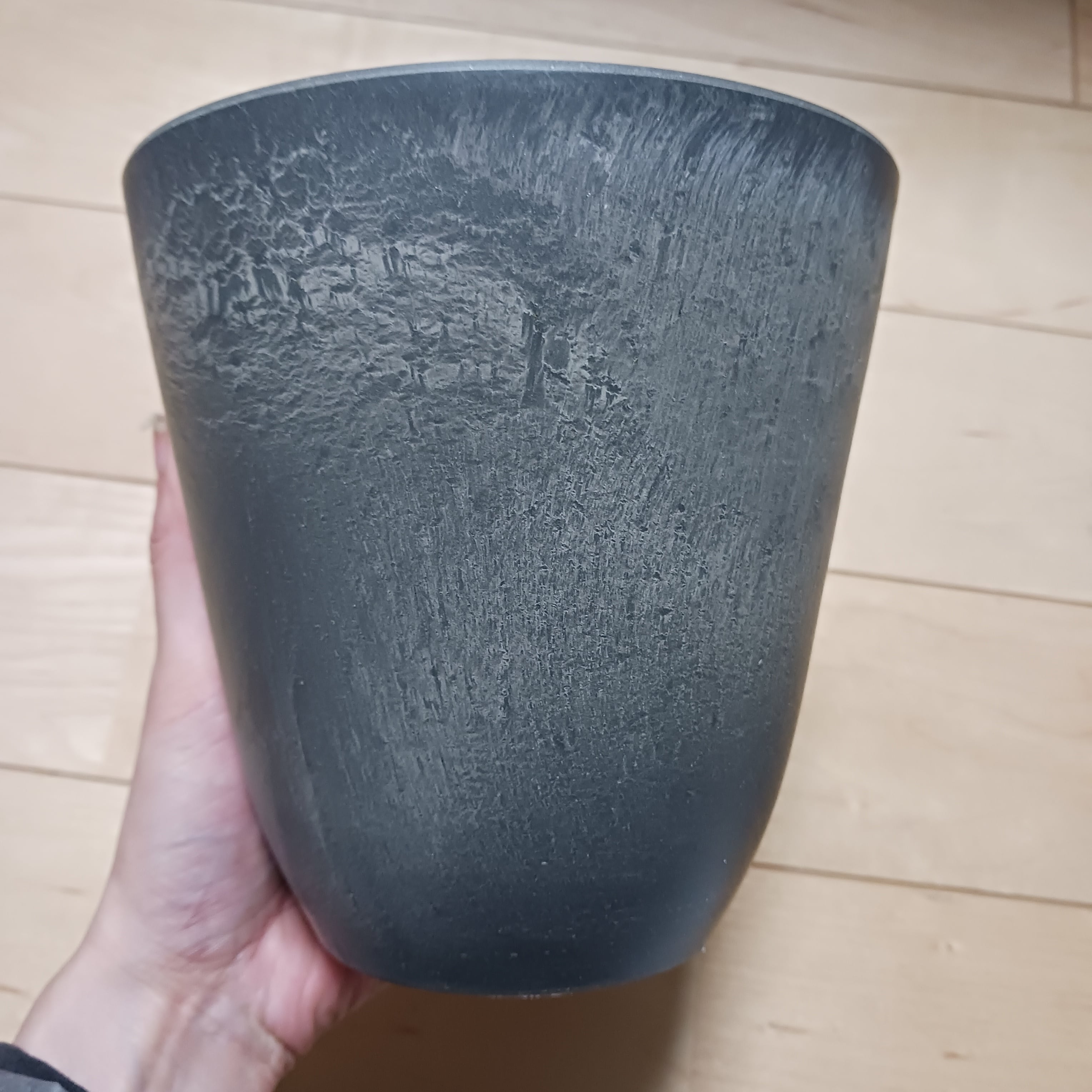 プラスチックに自然素材を混ぜ合わせ、安っぽく感じにくいです。陶器に比べると軽量で割れにくく、扱いやすいです。