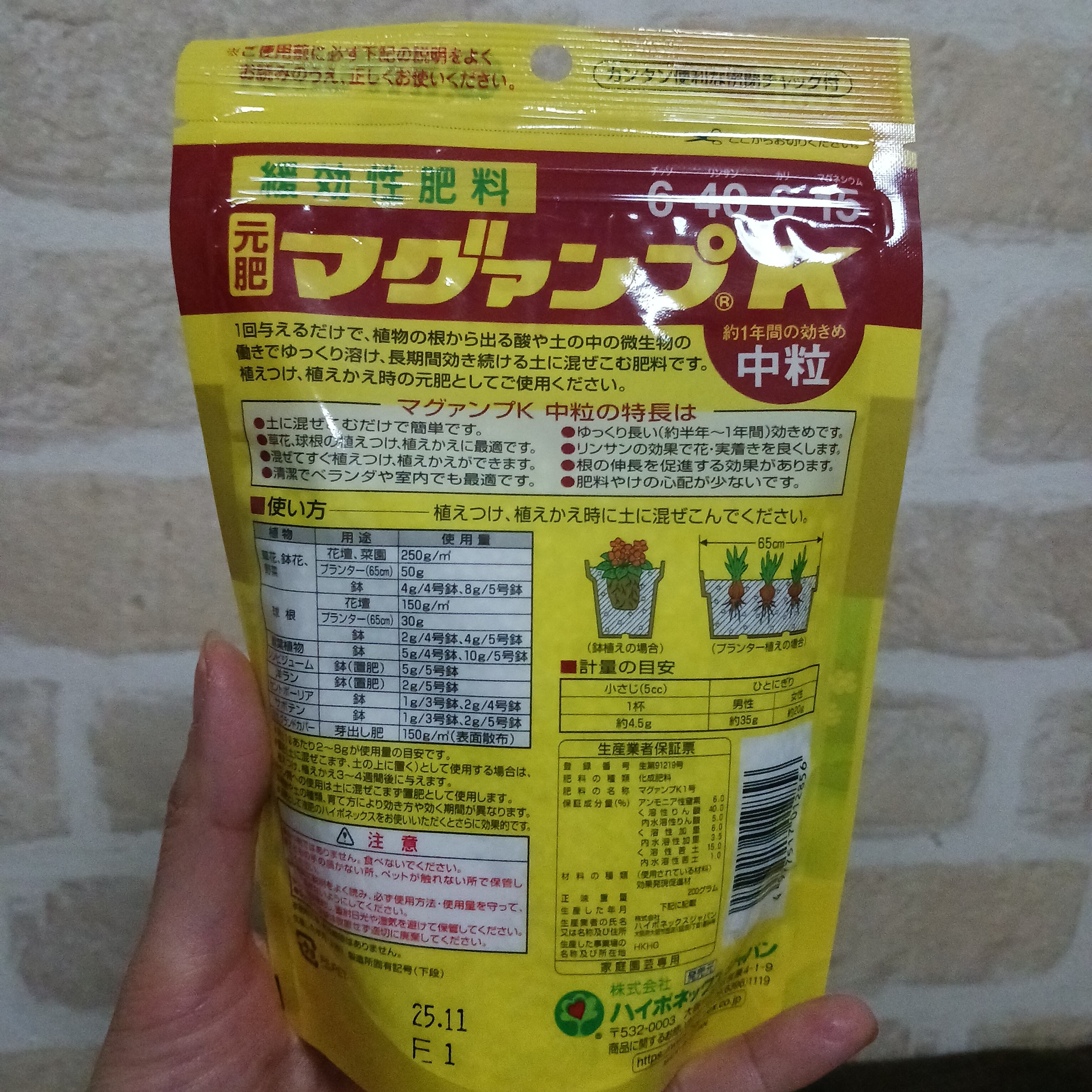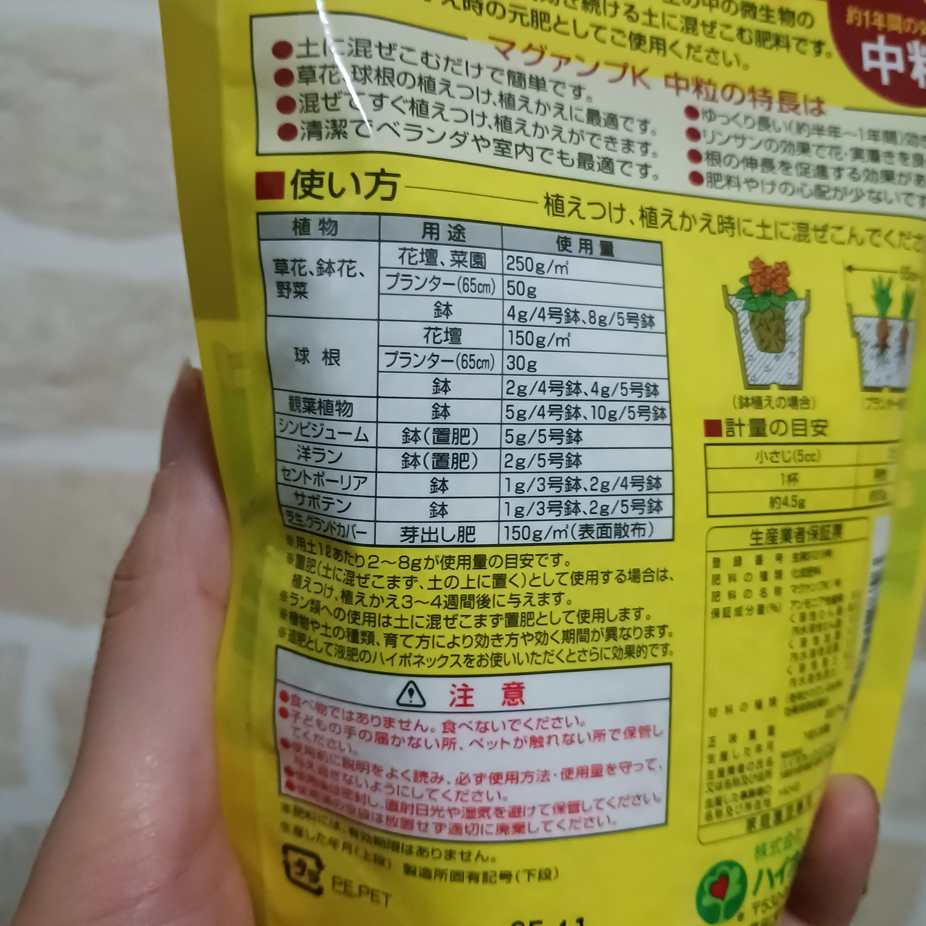 ※用土1Lあたり2~8gが使用量の目安です。