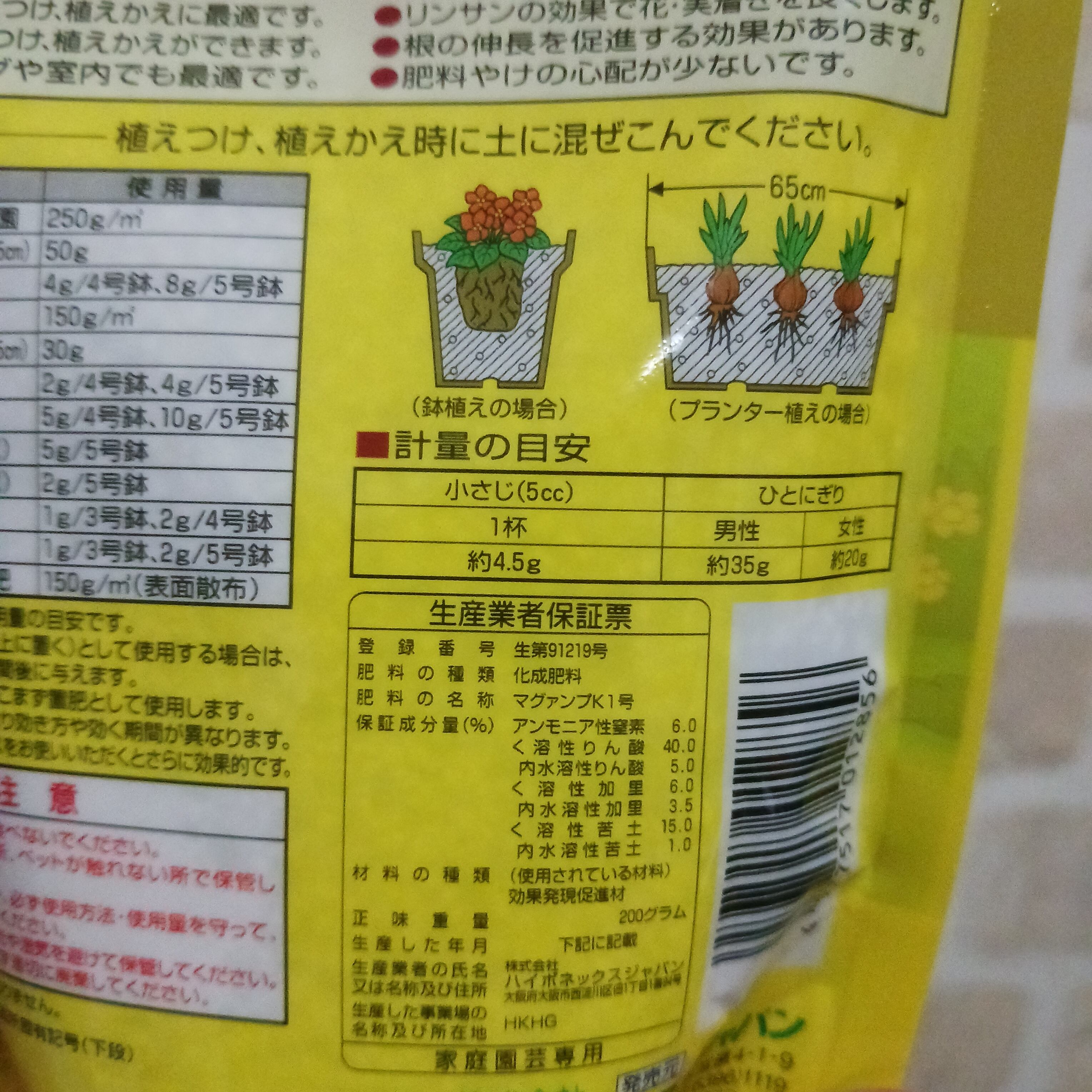 ※置肥(土に混ぜ込まず、土の上に置く)として使用する場合は、植えつけ、植えかえ3~4週間後に与えます。